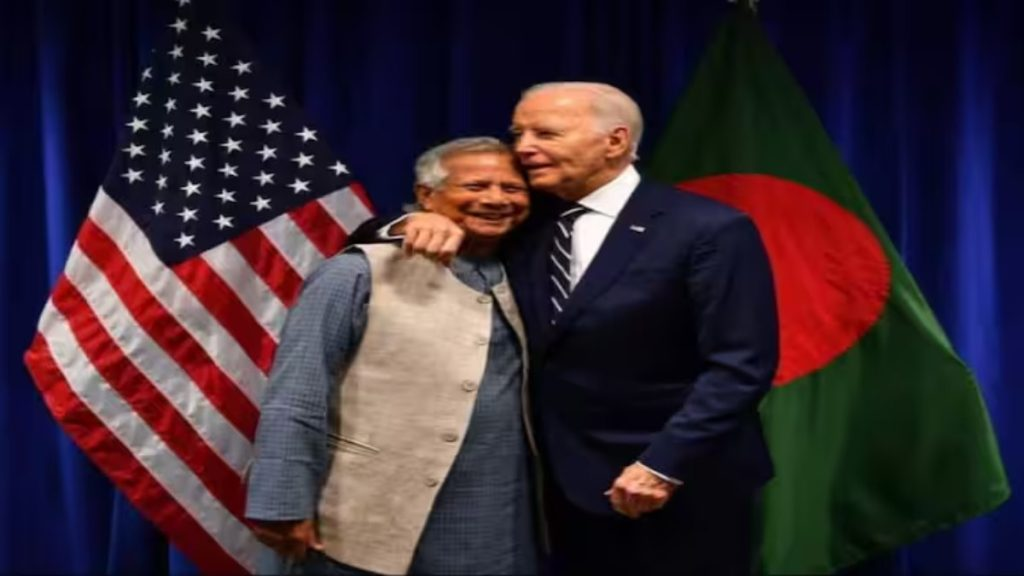 बांग्लादेश की नई अंतरिम सरकार को अंतरराष्ट्रीय स्तर पर बड़ी सफलता मिलती दिख रही है। अमेरिकी राष्ट्रपति जो बाइडेन ने बांग्लादेश के नए अंतरिम सरकार प्रमुख मोहम्मद यूनुस से मुलाकात की है। मुलाकात के दौरान अमेरिकी राष्ट्रपति ने बांग्लादेश के नए अंतरिम सरकार प्रमुख को गले भी लगाया। साथ ही फुल सपोर्ट का वादा भी किया। इससे ये अंदाजा लगाया जाने लगा है कि बांग्लादेश में तख्ता पलट पर भारत की शंका कहीं सही तो नहीं.. तख्ता पलट के पीछे अमेरिका या अन्य़ पश्चिमी देश तो नहीं है।