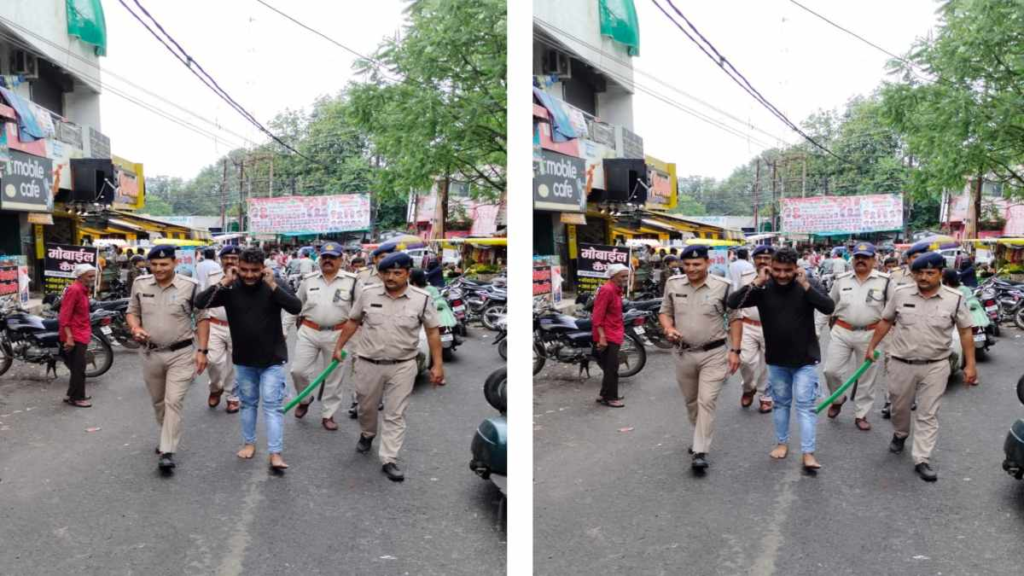शब्बीर अहमद, भोपाल। मध्य प्रदेश की राजधानी भोपाल में चलती बस में लूट करने वाले आरोपियों को पुलिस ने गिरफ्तार कर लिया है। पकड़े गए 4 आरोपियों ने तीन नाबालिग है। वहीं पुलिस ने मुख्य आरोपी का जुलूस भी निकाला है। इस दौरान आरोपी अपराध करना पाप है, पुलिस हमारी बाप है कहता हुआ नजर आया। दरअसल, रविवार को जहांगीराबाद थाना क्षेत्र में फिल्मी स्टाइल में ऑटो से आए बदमाशों ने चलती बस लूट की वारदात को अंजाम दिया था। बदमाशों ने पहले बस कंडक्टर को चाकू मार कर लूट की थी। फिर एक सवारी को भी चाकू मार कर लूटा था। लूट के बाद बस में ही बदमाश बैठे रहे, फिर अगले स्टॉप से चढ़े अन्य सवारी से भी लूट की थी। लूट की वारदात के बाद बस में सवार सभी यात्री अगले स्टाप पर उतर गए थे। सवारियों के उतरने के बाद आरोपी भी बस से उतर कर फरार हो गए थे।