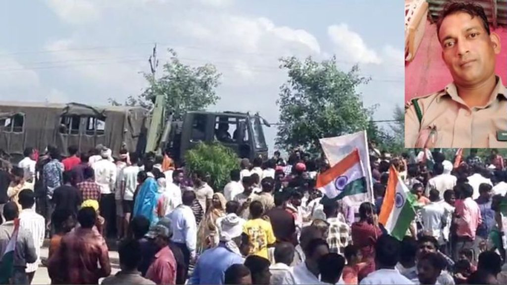 मैहर। छत्तीसगढ़ के CRPF कैंप में गोलीबारी से मृत रुपेश पटेल को शहीद का दर्जा देने की मांग को लेकर ग्रामीणों के साथ परिजनों ने हाइवे पर चक्का जाम कर दिया है। परिजनों ने शहीद का दर्जा नहीं मिलने तक शव लेने से भी इंकार कर दिया है। पुलिस और प्रशासन के अधिकारी समझाइश में लगे हुए हैं। समाचार के लिखे जाने तक लोग सड़क पर ही बैठे हुए हैं। मामला शांत नहीं हुआ है।