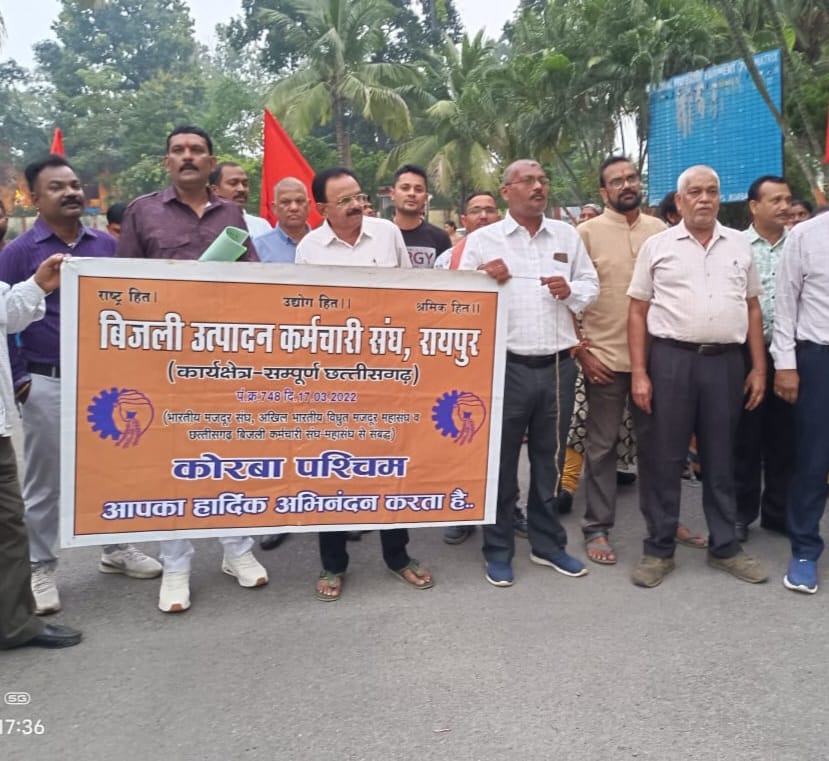 भारतीय मजदूर संघ से संबद्ध छत्तीसगढ़ बिजली उत्पादन कर्मचारी संघ द्वारा बिजली कर्मियों के पुरानी पेंशन बहाली, संविदा कर्मियों के नियमितीकरण, तकनीकी भत्ता, दीपोत्सव पूर्व अनुग्रह राशि प्रदान करने संबंधी 22 सूत्रीय मांगों को लेकर पावर कंपनी अध्यक्ष के नाम से ज्ञापन दिए जाने हेतु डॉ श्यामा प्रसाद मुखर्जी ताप विद्युत गृह कोरबा पूर्व में आमसभा आयोजित हुई।