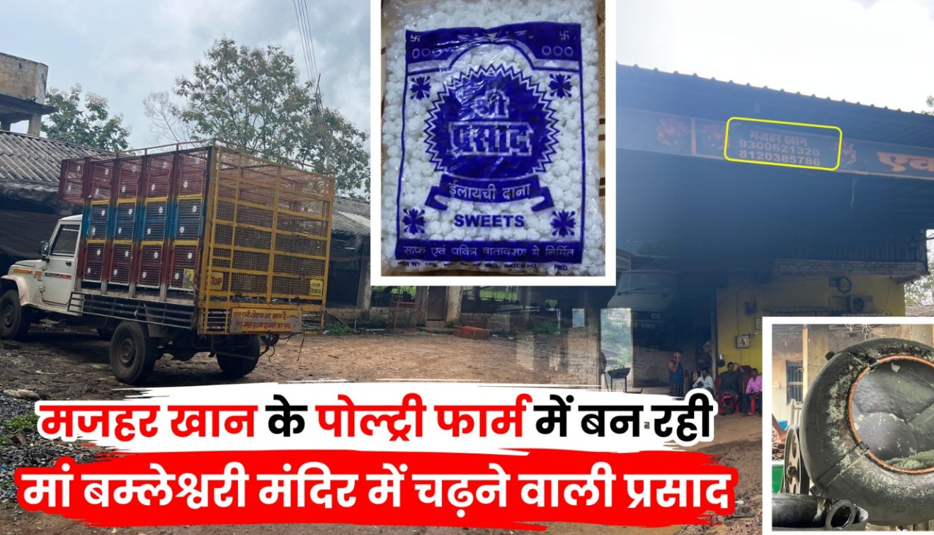 रायपुर/डोंगरगढ़. अमित पांडेय. तिरूपति बालाजी मंदिर के प्रसाद में मिलावटी घी के बवाल के बाद पूरे देश में इन दिनों मंदिरों में चढ़ाए जाने वाले प्रसाद की क्वालिटी की जांच शुरू हो गई है. इस बीच छत्तीसगढ़ से एक बड़ी खबर सामने आई है. यहां खाद्य विभाग ने मजहर खान के एक पोल्ट्री फार्म में छापा मारा है, जहां बड़ी मात्रा में ‘श्री प्रसाद’ नाम से इलायची दाना बनाया जा रहा था. हैरानी की बात ये है कि जिस पैकेट में ये इलायची दाना बेचा जा रहा था उसमें माता बम्लेश्वरी के भक्तों को गुमराह करने के लिए ये भी लिखा हुआ है कि इसे ‘साफ एवं पवित्र वातावरण में निर्मित’ किया गया है.