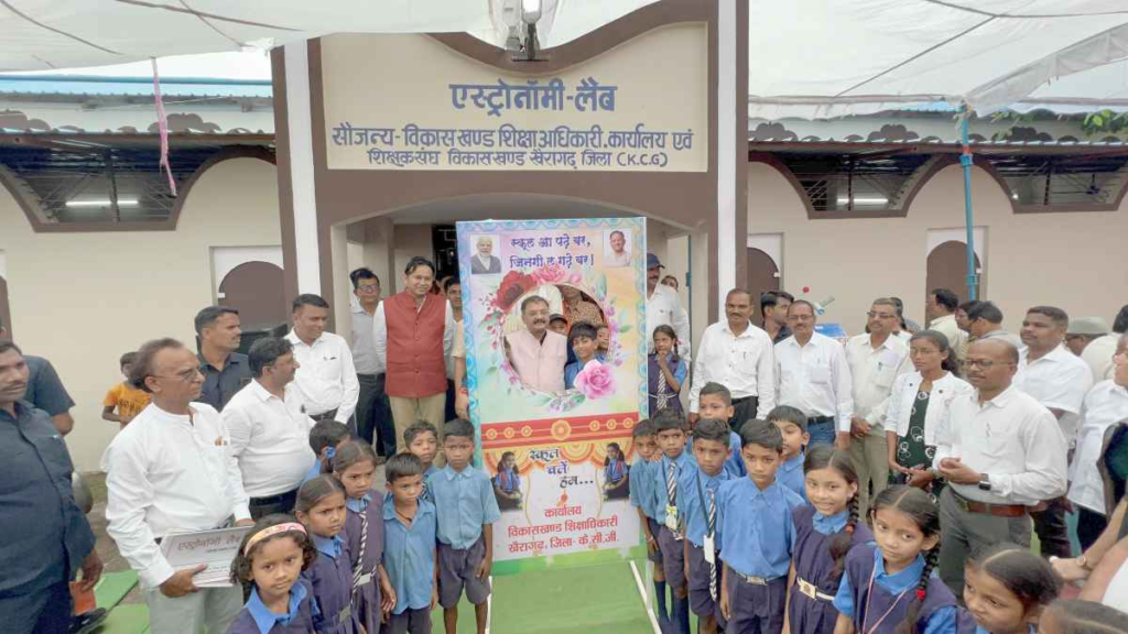 खैरागढ़. जिले के स्कूली छात्र-छात्राओं को आज बड़ी सौगात मिली है. प्रदेश का दूसरा और संभाग का पहला एस्ट्रोनॉमी लैब खैरागढ़ शहर स्थित शाला क्रमांक 2 में बनाया गया है, जिसका शुभारंभ राजनांदगांव सांसद संतोष पांडेय ने किया. बता दें कि खैरागढ़ शहर की इस शाला में पूर्व मुख्यमंत्री रमन सिंह ने भी पढ़ाई की थी. इस स्कूल का भवन बीते कुछ वर्षों से जर्जर हो चुका था, जिसको जनभागीदारी जनसहयोग से एस्ट्रोनॉमी लैब में परिवर्तित किया गया है.