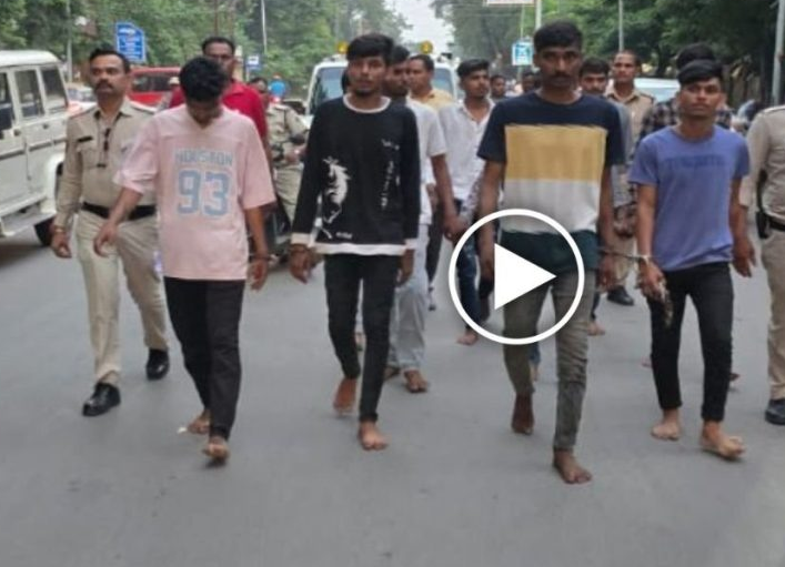 बता दें कि इन आरोपियों ने जहां इस वारदात को अंजाम दिया था उसी जगह पर पुलिस ने आज इन सभी बदमाशों का जुलुस निकाला। इस दौरान बदमाशों के साथ बड़ी संख्या में पुलिस जवान और अधिकारी मौजूद थे।